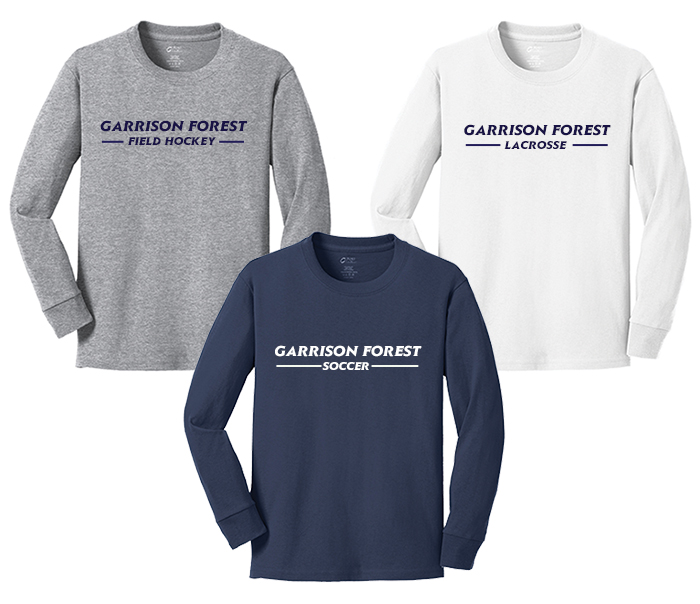 Garrison Forest AthleticsYouth 100% Cotton Long Sleeve Tee - $22This classic long sleeve tee is a wardrobe essential. It is made of durable, yet soft, 100% cotton.